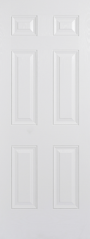 Crafted from a white GRP material, this Colonial 6P door is designed with four raised rectangular panels and two raised square ones.