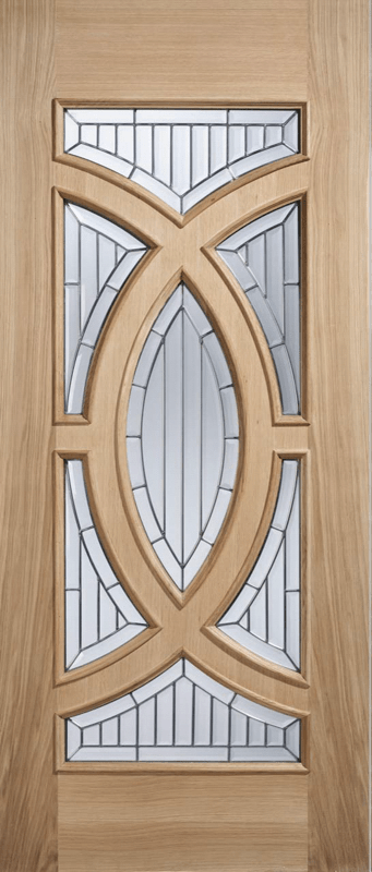 Make a great first impression with the Majestic door, featuring zinc clear bevelled double glazed panels and decorative shaped Oak panels.