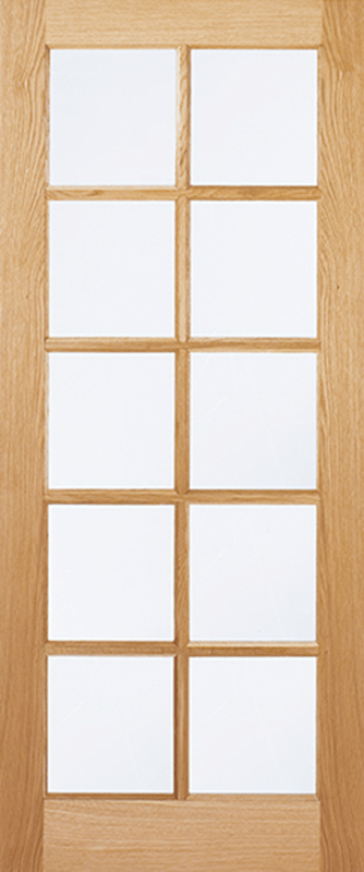 Ten square clear glazed panels are framed in a beautiful unfinished Oak surround to create this practical door design.