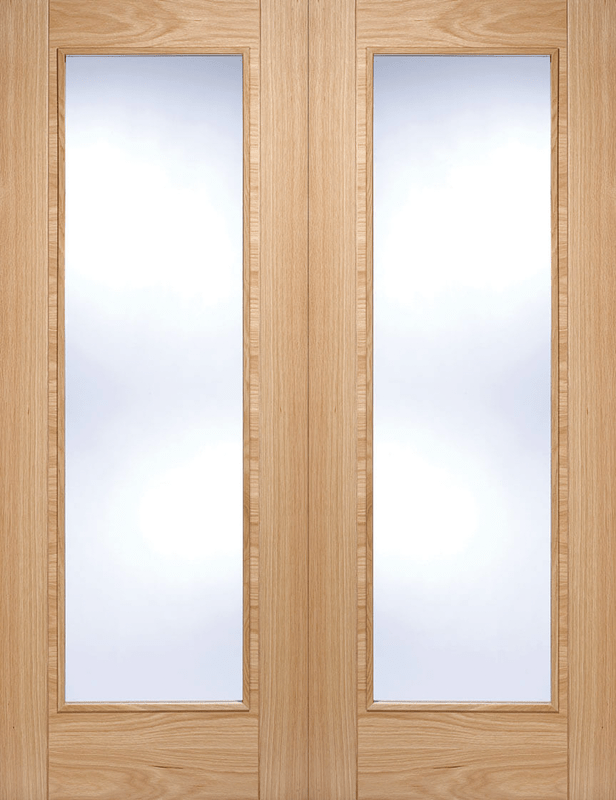 A pair of the ever popular Vancouver design, featuring two large, clear glazed panels, allowing light to pass between rooms in a simple, stylish way. This set of rebated doors features a left-hand pull.