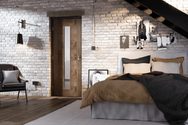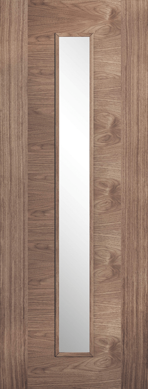 The distinct, warm walnut grain pattern and contrasting side panels makes this door a stylish choice with the added benefit of a veritcal light with clear glazing in the centre of the Sofia.