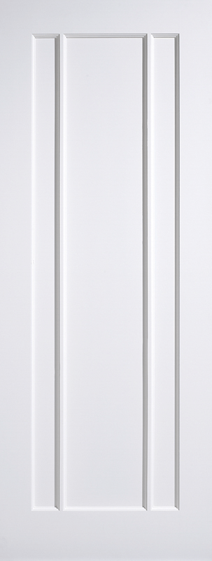 This attractive Lincoln door is crafted from a white primed solid core and features a large inset panel with decorative vertical bars.
