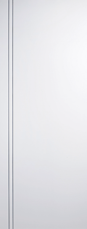 Ideal for minimalistic interiors, this Sierra door design features a pre-finished composite in white and two decorative vertical bars.
